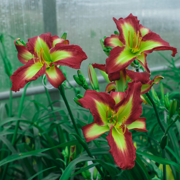 Red River Dancer (Rose F. Kennedy x Time Stopper) Seedling number D-26 Diploid 38" Midseason Dormant emo fr 8" 4-5 way branching 22-28 buds. Fertile both ways. Rebloomer. Very good rust resistance. USDA Plant Hardiness Zone 5-10. If you liked my last year's Cliffjumper (Now sold out until 2019 at the very earliest) you are going to LOVE Red River Dancer. This full sibling to Cliffjumper has every bit of the great performing plant habit, stunning size and outrageous good looks of her sister, but in an even redder package. She carries beautifully spaced 4 way branching with 26 buds on each stem. Outrageously beautiful in a clump, a fantastic garden and show flower. This is one of my number one red diploids to date.......$100 DF. SOLD OUT